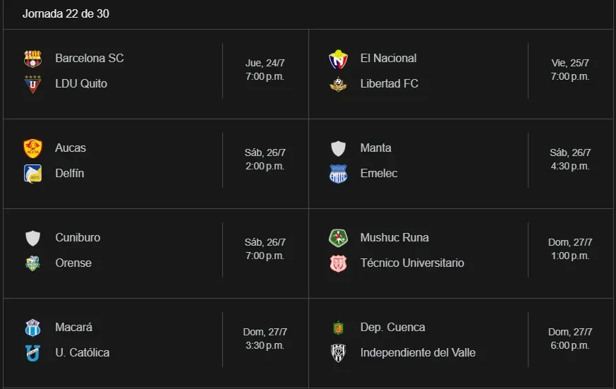 Así quedó la tabla de posiciones de LigaPro tras el empate de Liga de QuitoProgramación fecha 22 de LigaPro