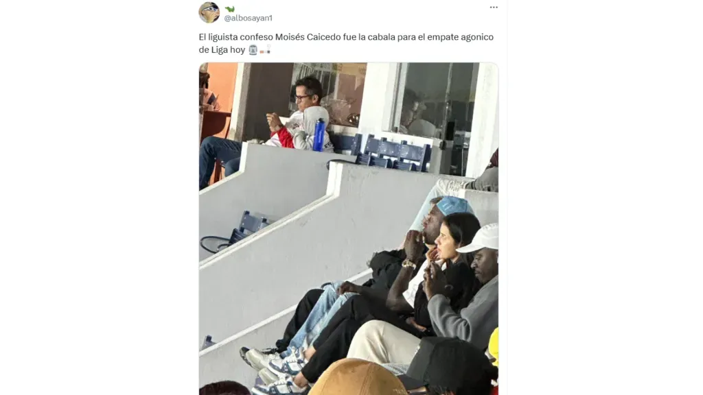 Con este gesto, Moisés Caicedo también se unió a Pervis Estupiñán como los jugadores ecuatorianos, destacados de la Selección, que estuvieron viendo a Liga de Quito en los últimos partidos. El lateral lo hizo antes de viajar a Inglaterra para jugar la pretemporada.